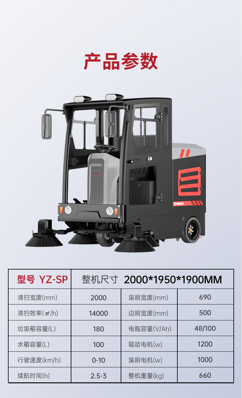 扬子YZ-SP 200/180驾驶式扫地车,清扫车,厂家直销,省30%成本,工作时间:2.5-3h,重量:780kg,效率:14000m2/h,大于15人工作效率,干净不留痕,免费试机,买贵包退.专业的售后团队,免费上门指导操作和维护.扬子YZ-SP 200/180分普通款和锂电款,想进一步了解,请咨询在线客服或拨打官方免费热线,客服详细解答产品参数和最新活动价格